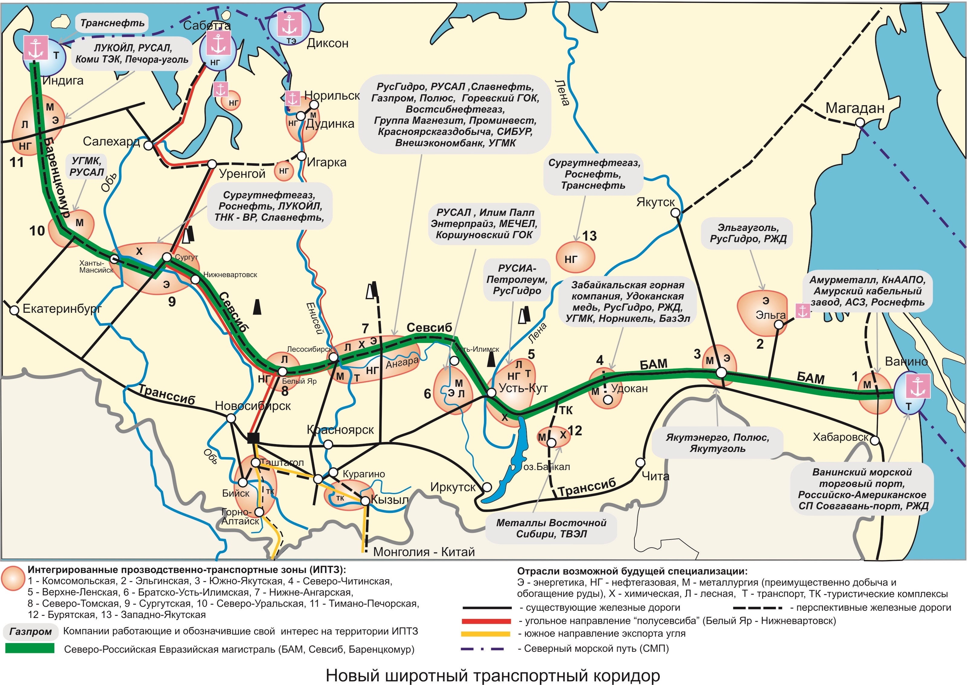 По словам советника президента РФ Игоря Левитина, сейчас есть только два железнодорожных подхода к СМП – Мурманск и Владивосток. Необходим третий. «Нам нужно бросить ещё одну железнодорожную линию где-то в середине Северного морского пути. Мы сейчас рассматриваем два варианта. И тогда Урал и Сибирь смогут напрямую выходить на Северный морской путь и не занимать Транссиб», – полагает Игорь Левитин.